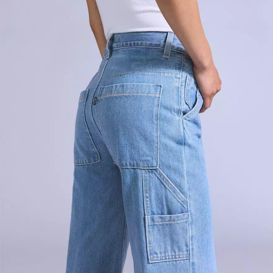 Un basique workwear revisité. Notre pantalon Carpenter a une taille mi-haute flatteuse qui arrive juste au niveau du nombril et un fit relaxed avec une jambe droite classique. Avec quelques détails utilitaires emblématiques comme des poches plaquées, un passant de jambe et une poche marteau.