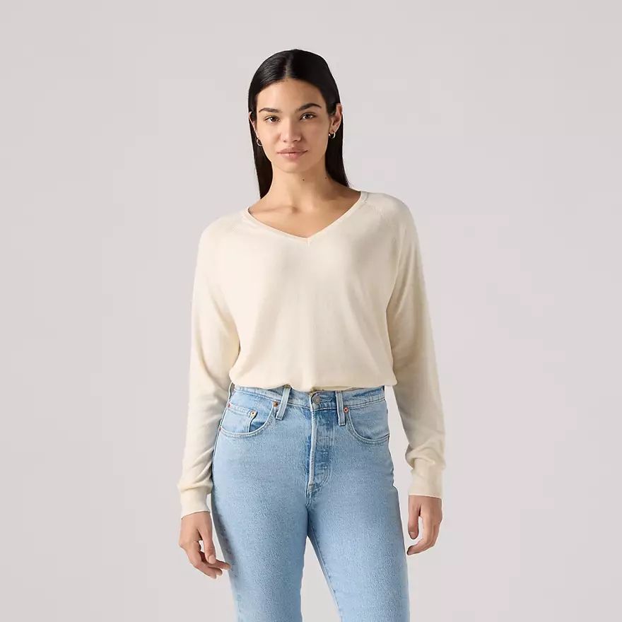 Notre pull-over col V Petal est une pièce incontournable au quotidien. Il a une encolure en V simple, un fit relaxed et confortable et une bande de côtes tricotée aux poignets et à la taille.