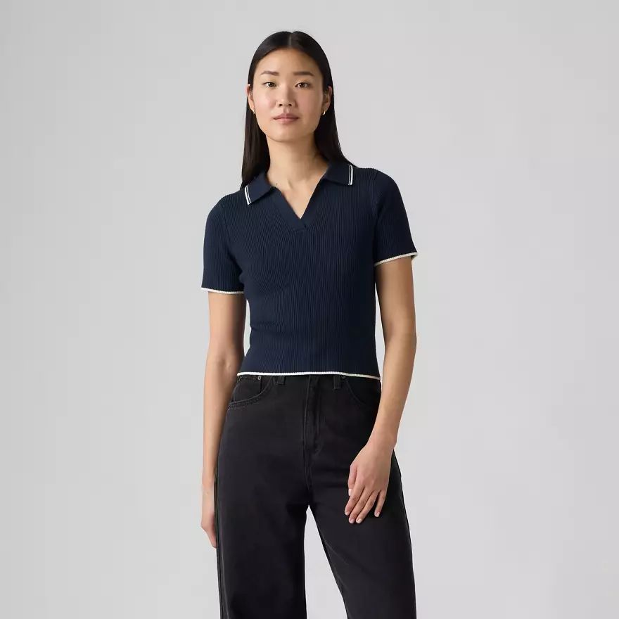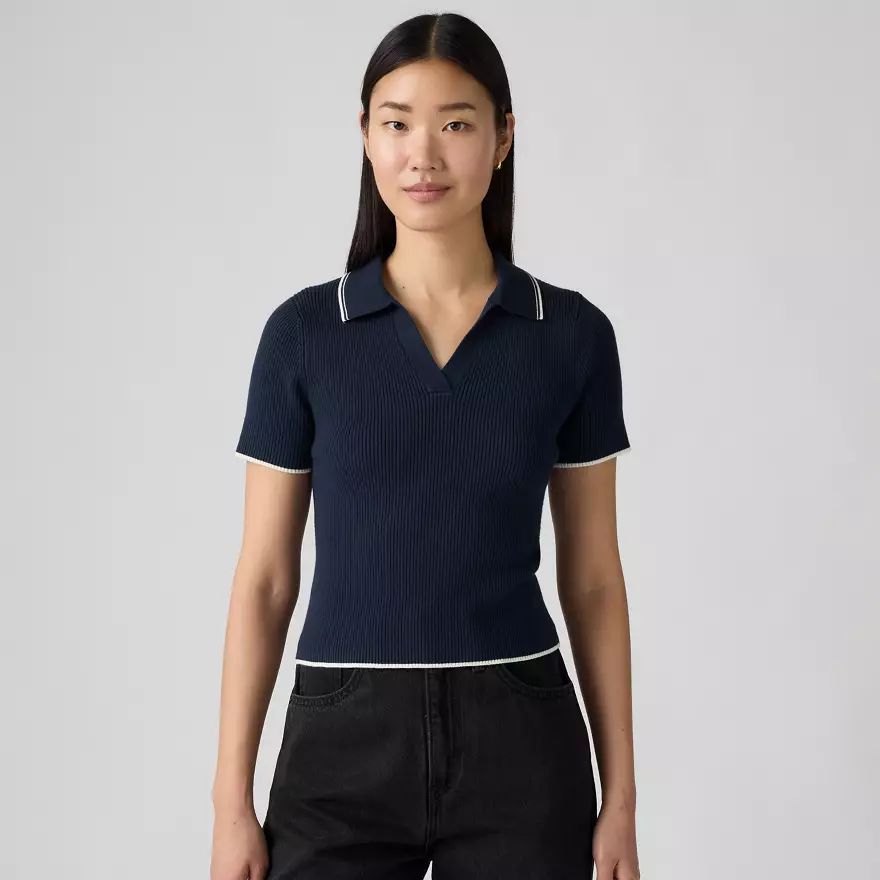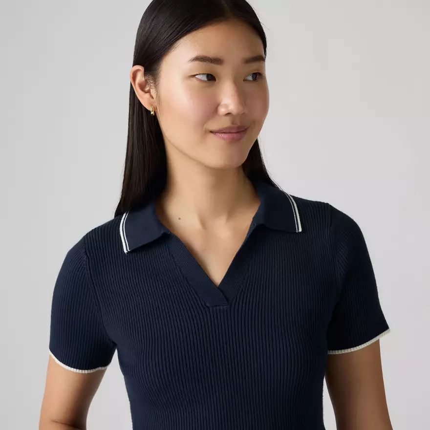 Le style polo classique, réactualisé. Notre pull Faith Polo reprend les éléments classiques du style avec une encolure en V flatteuse, un col polo intemporel et une maille côtelée douce.
