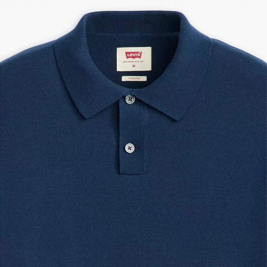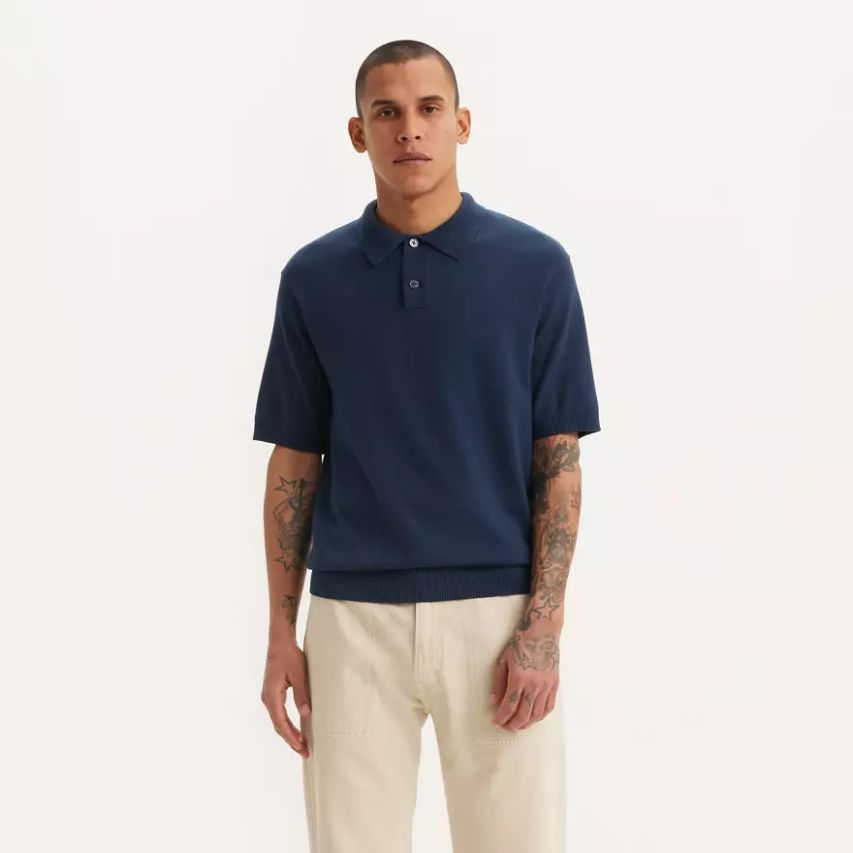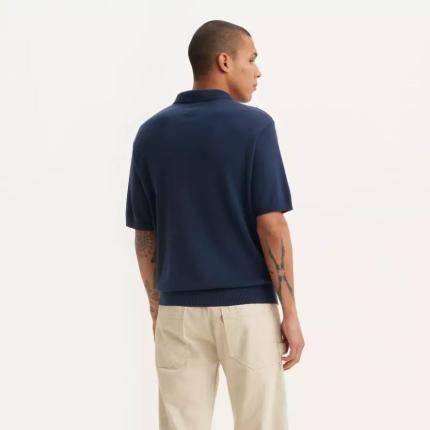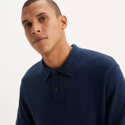Le roi des polos se refait une jeunesse. Notre pull-over à col polo en maille a un fit relaxed et une patte de boutonnage classique à deux boutons, un col à pointe et les bandes de taille et de manche tricotées en côtes.