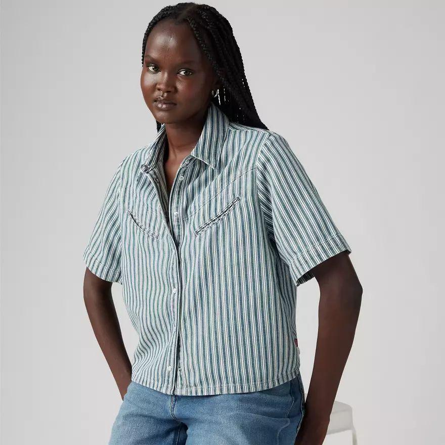 Nous avons voulu transmettre les vibes cool du style américain à notre chemise Camp Rinoa. Ce basique présente une patte de boutonnage devant, des coutures d’inspiration western et un fit standard, décontracté.