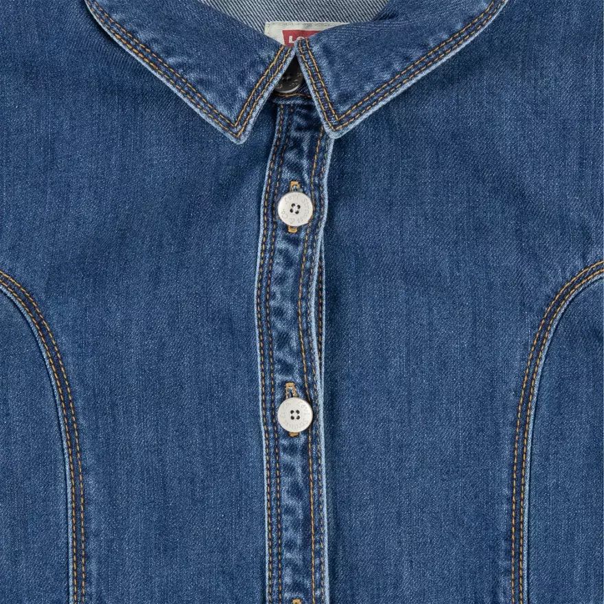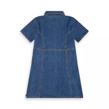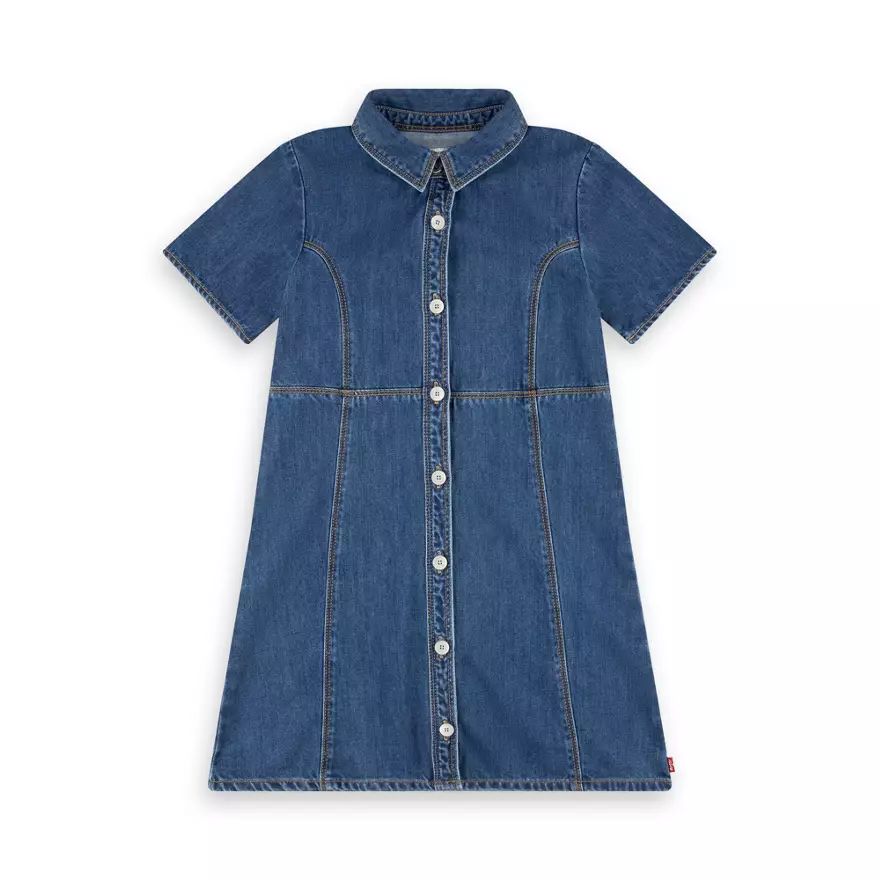 Cette robe en denim Levi's® affiche un style classique et une silhouette flatteuse et évasée dans laquelle les enfants peuvent bouger librement. Avec une fermeture boutonnée devant, des manches courtes à revers et une jupe circulaire qui permet de la porter facilement sur un legging ou un collant lorsqu’il fait plus froid pour plus de confort et de chaleur