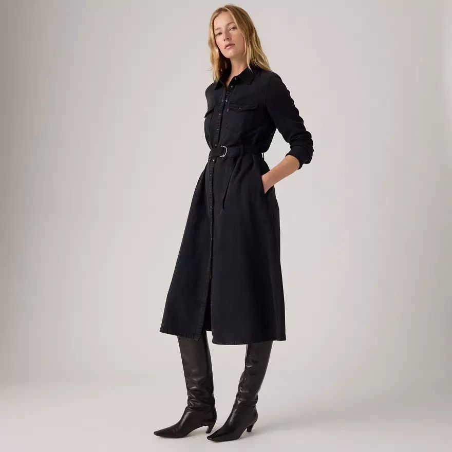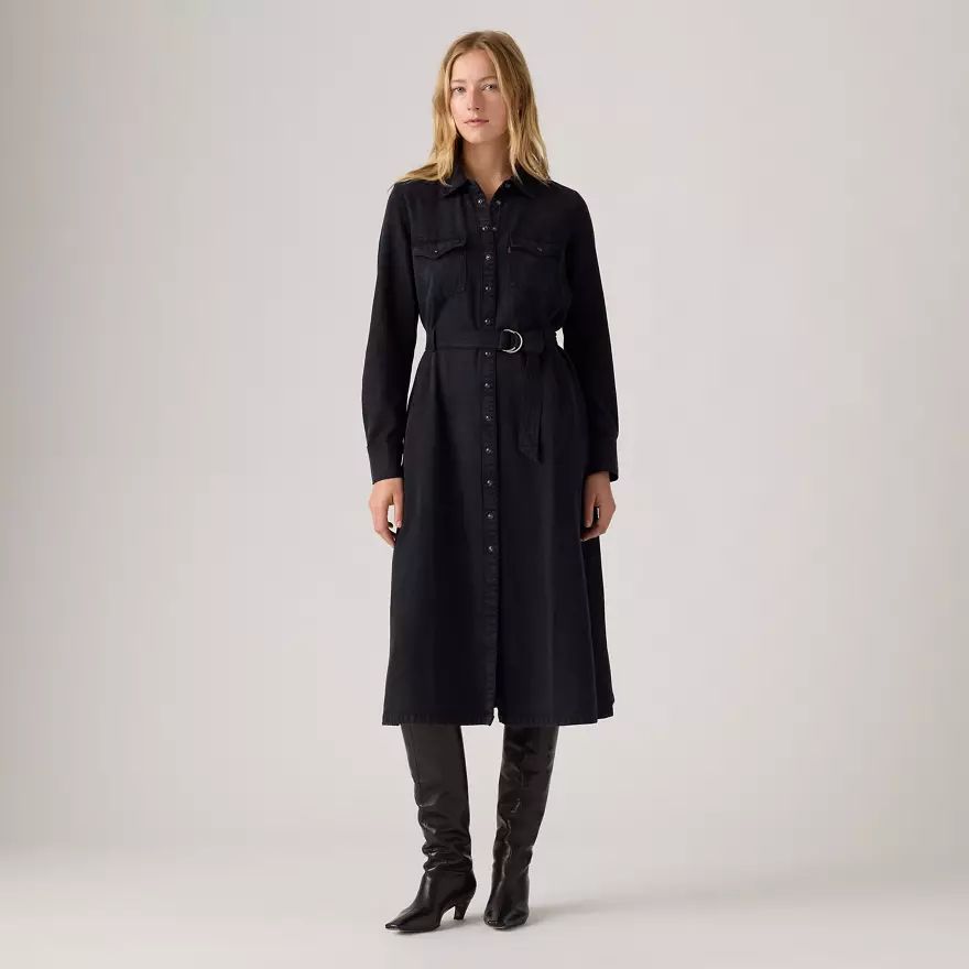 Western et moderne, facile à porter habillée ou décontractée, notre robe manche longue Maxi Quincey ne passe pas inaperçue. Elle a une patte de boutonnage classique devant, une ceinture pour souligner la taille et une longueur cheville.