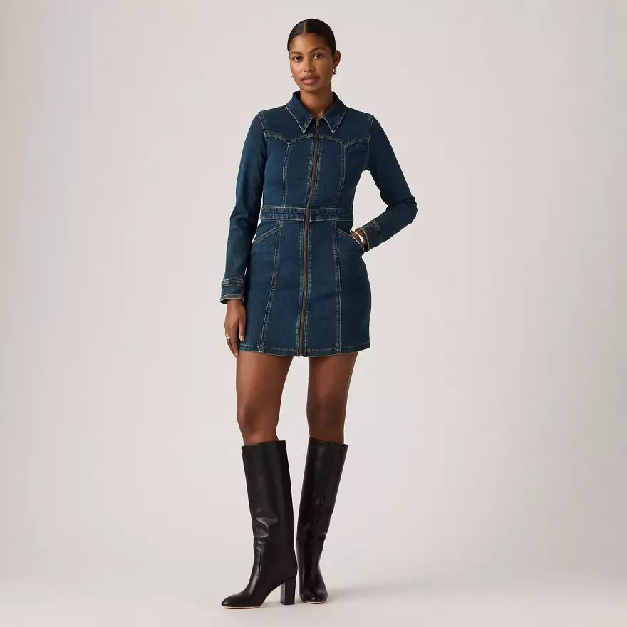Les années 1970 sont de retour avec notre robe Retro en denim. La coupe ajustée flatteuse est complétée par un zip intégral devant, deux poches et une longueur courte idéale.