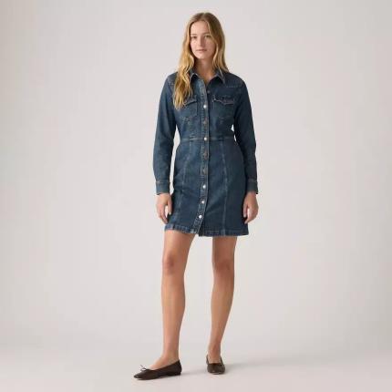 Avec la coupe en A de la chemise Levi's® classique, notre robe Flynn Western rehausse le denim. Nous avons conçu ce modèle avec des détails Levi's® classiques, comme les deux poches avant, un col à pointe et boutonnage devant.