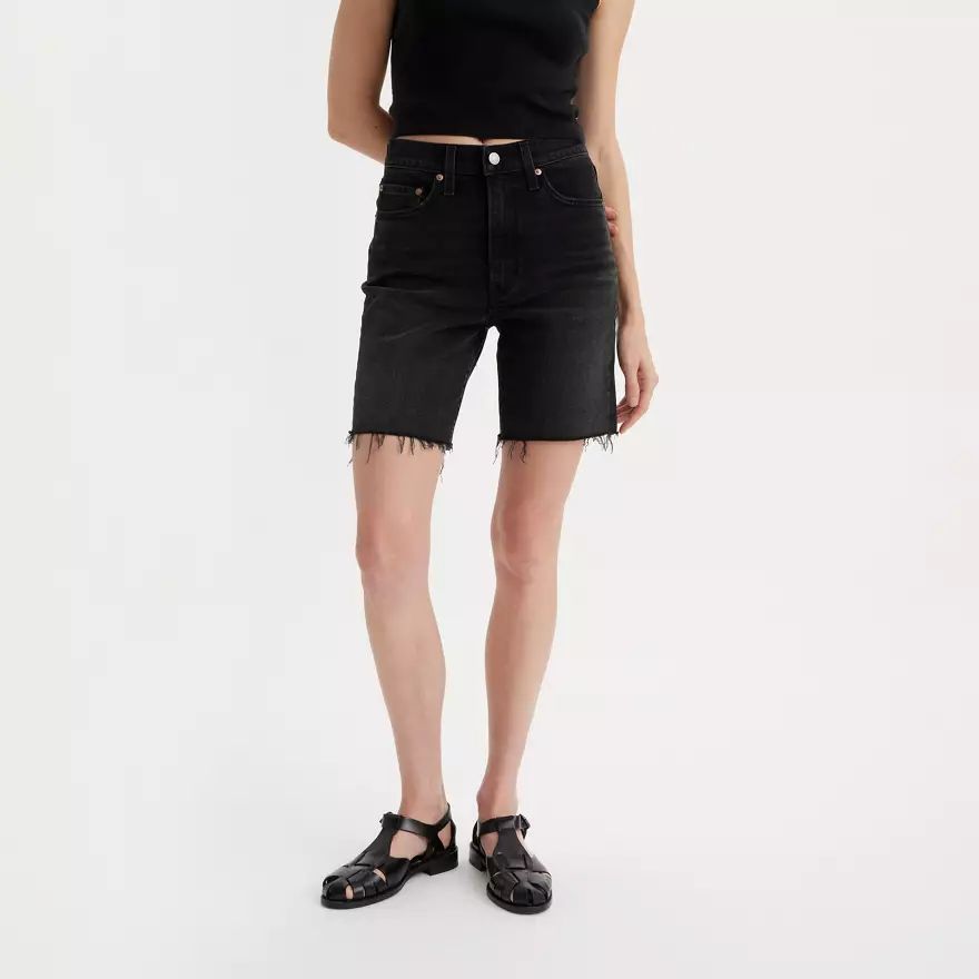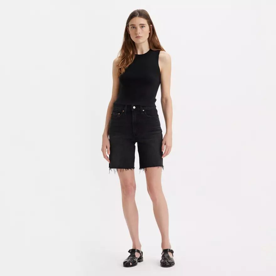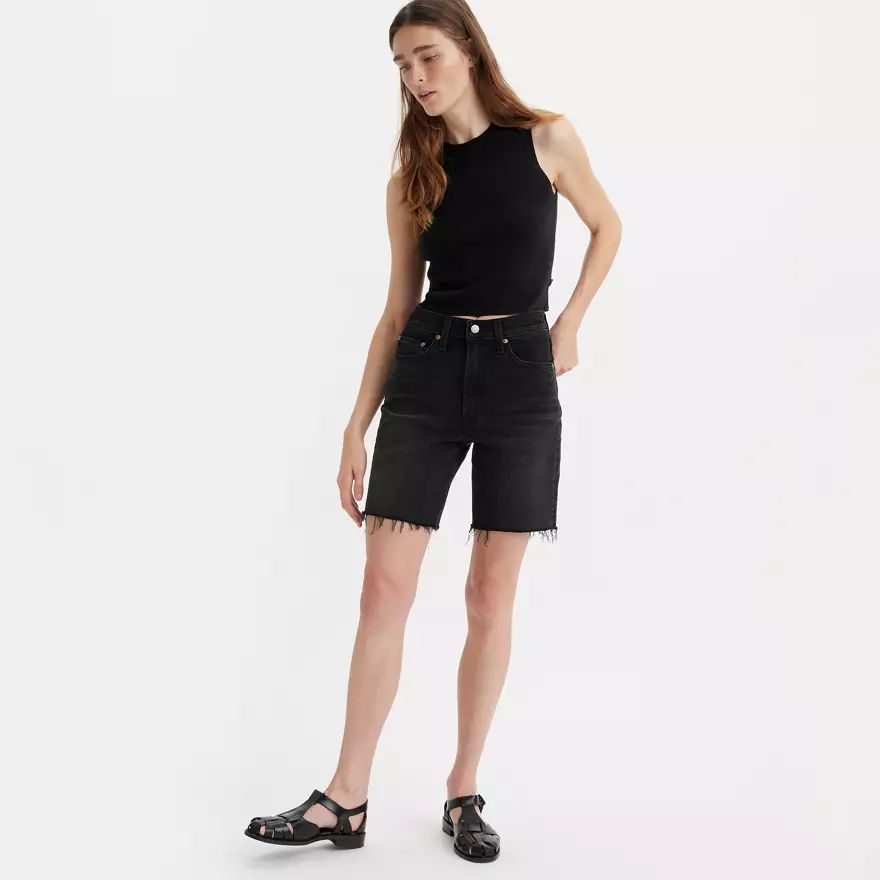 Notre taille la plus haute pour un short long classique. Avec sa taille haute de 30 cm, ce bermuda Ribcage a un fit slim des hanches aux cuisses et une longueur passe-partout qui tombe au-dessus du genou.