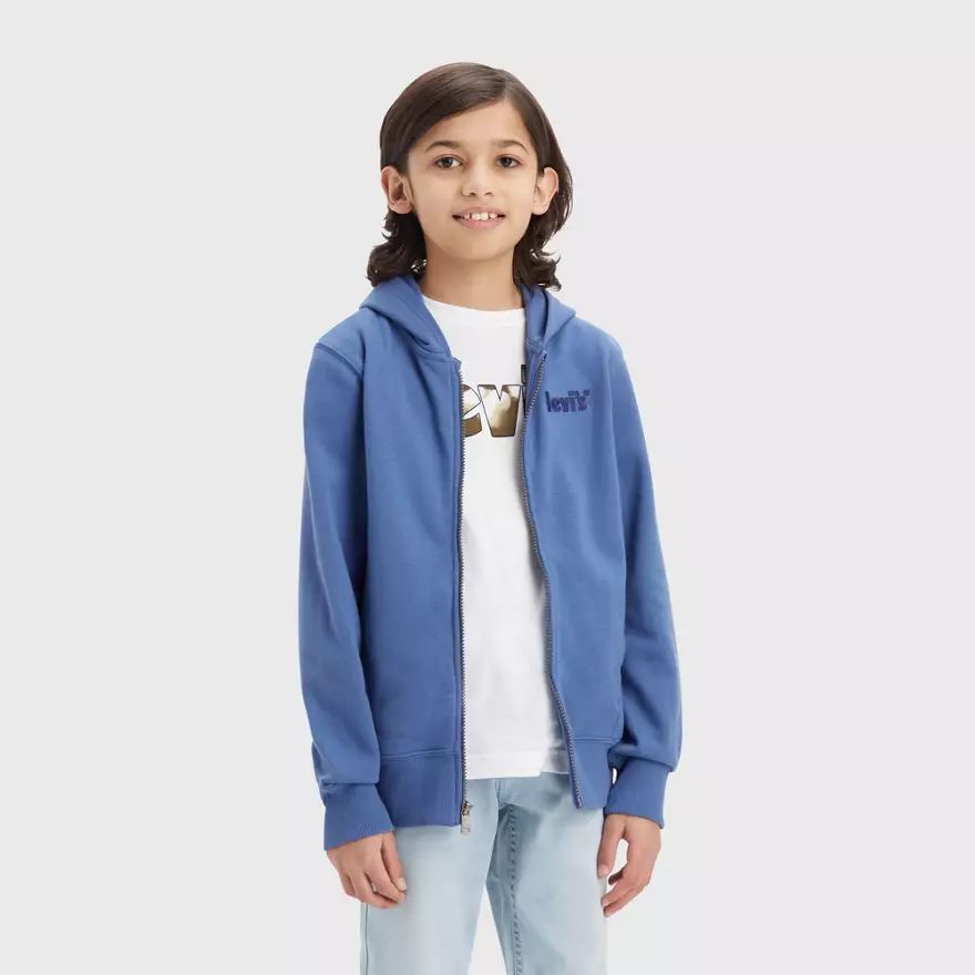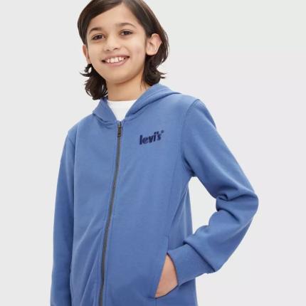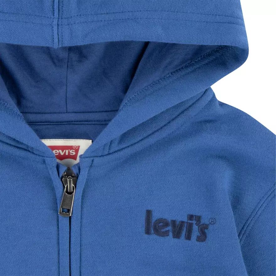 Ce sweat à capuche Levi's® est en jersey French Terry luxueusement suédé pour privilégier le confort. Le zip intégral facilite la superposition, et les bandes de poignet et de taille en bord-côtes permettent de garder l’enfant bien au chaud, ce qui en fait une pièce de base confortable et pratique