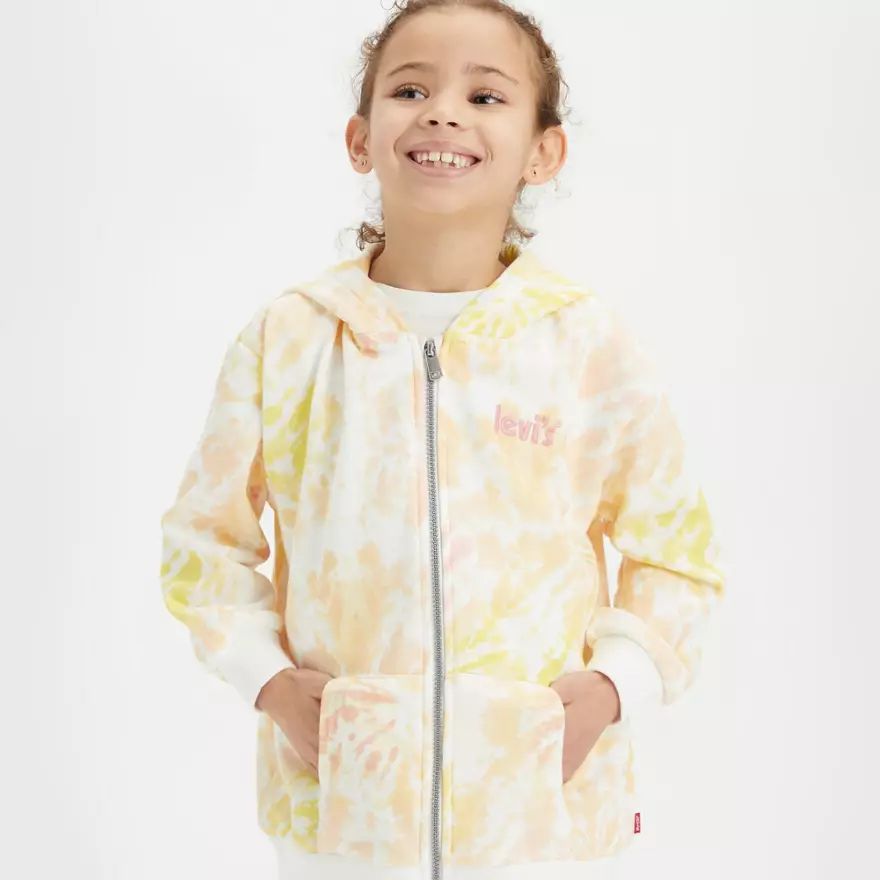 Ce sweat à capuche coloré en jersey French Terry de Levi's® affiche une coupe ample dans laquelle les tout-petits peuvent être à l’aise. Le zip intégral facilite la superposition, la capuche bien couvrante est très confortable et les bandes de poignet et de taille en bord-côtes contiennent la chaleur pour garder les enfants bien au chaud