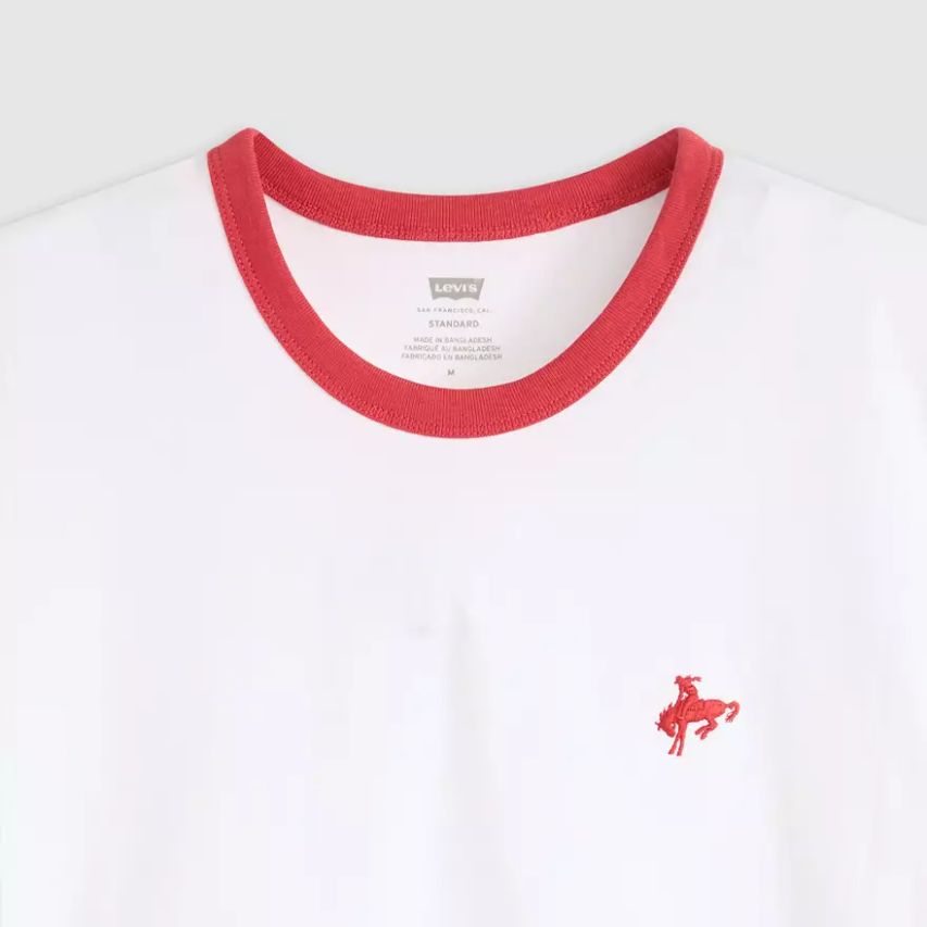 Clin d’œil au passé, voici notre t-shirt brodé rétro Ringer. Proposé dans une coupe classique et standard, ce modèle a des bandes de col et de manches contrastées et une broderie Levi's®.