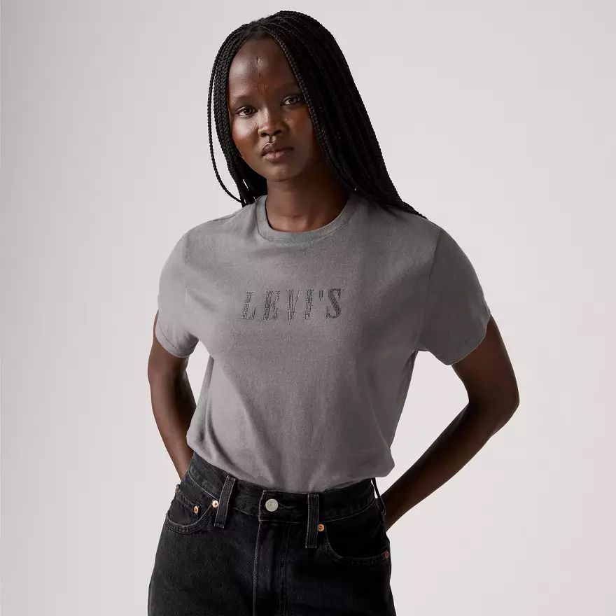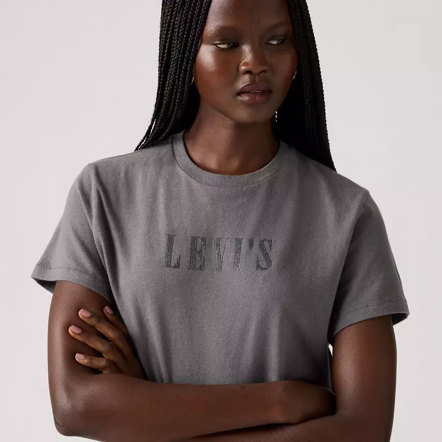 Couleur: Rhinestone Serif Logo Smoked Pearl - Gris