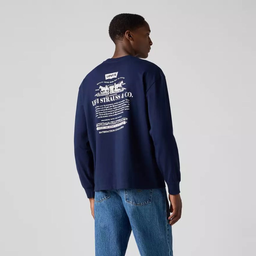 Nos denims et t-shirts vont tellement bien ensemble. Ce t-shirt à manches longues graphique présente un fit relaxed confortable et un look rétro. Dans l’esprit de ce que vous trouvez dans votre friperie préférée, sans les boules de naphtaline.