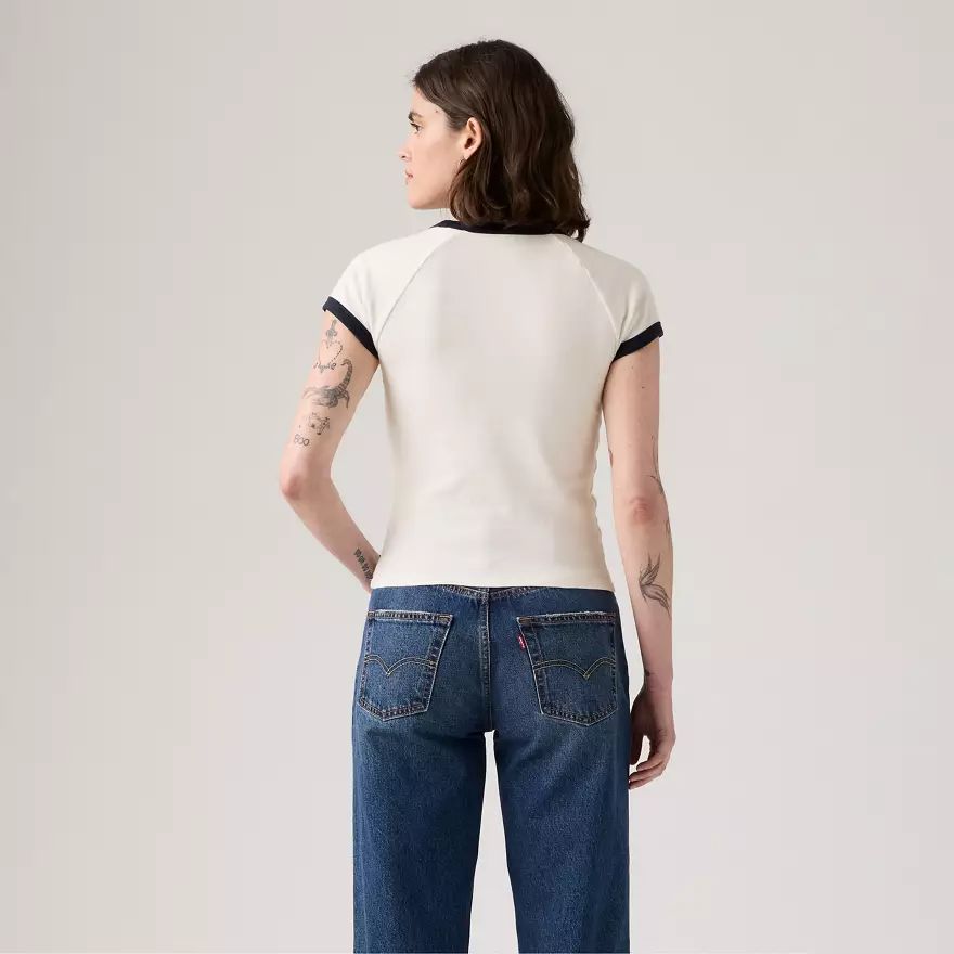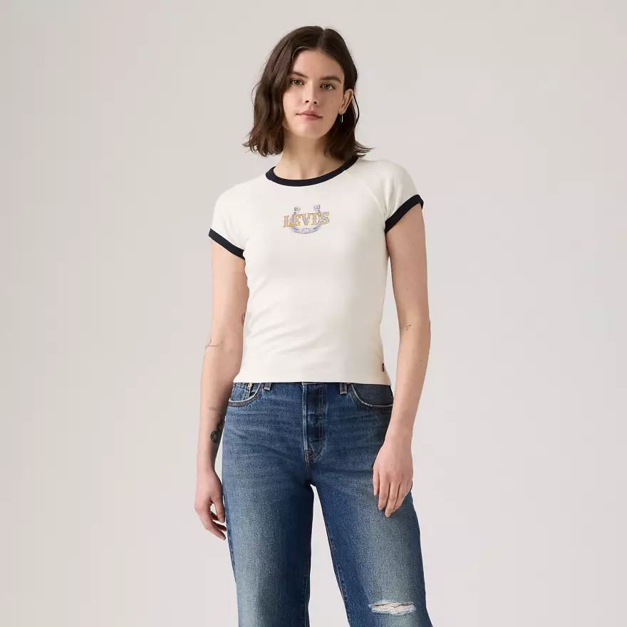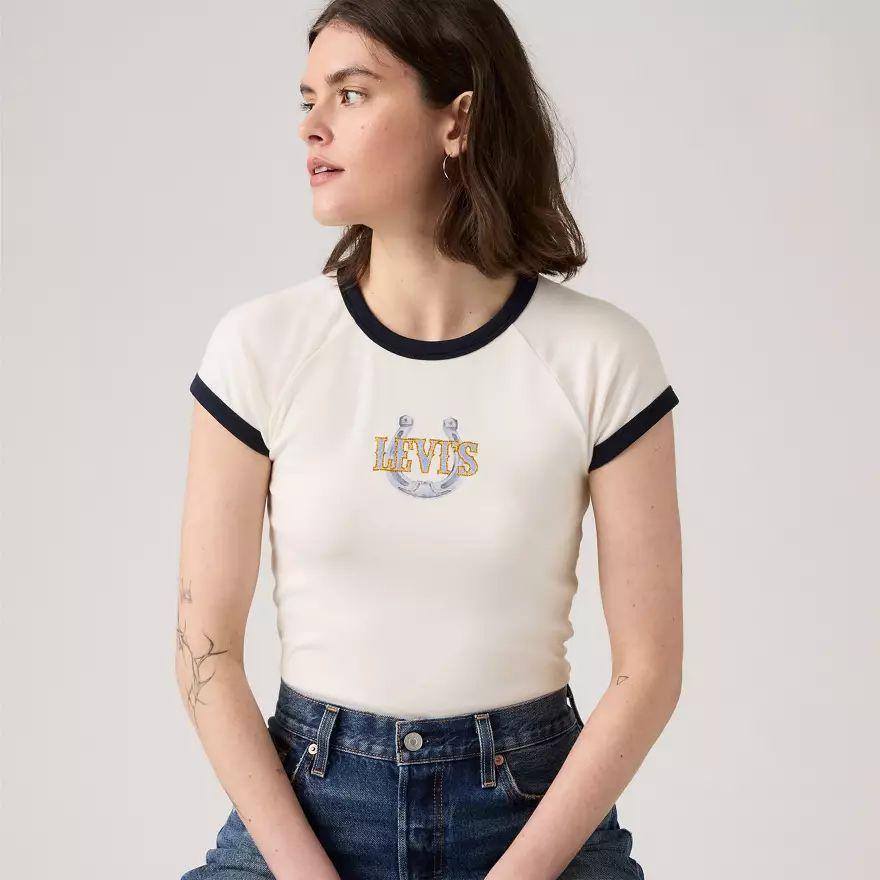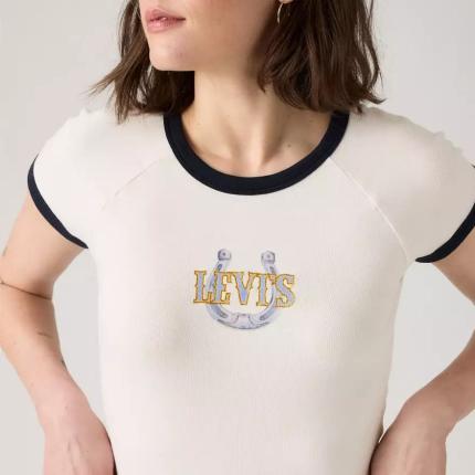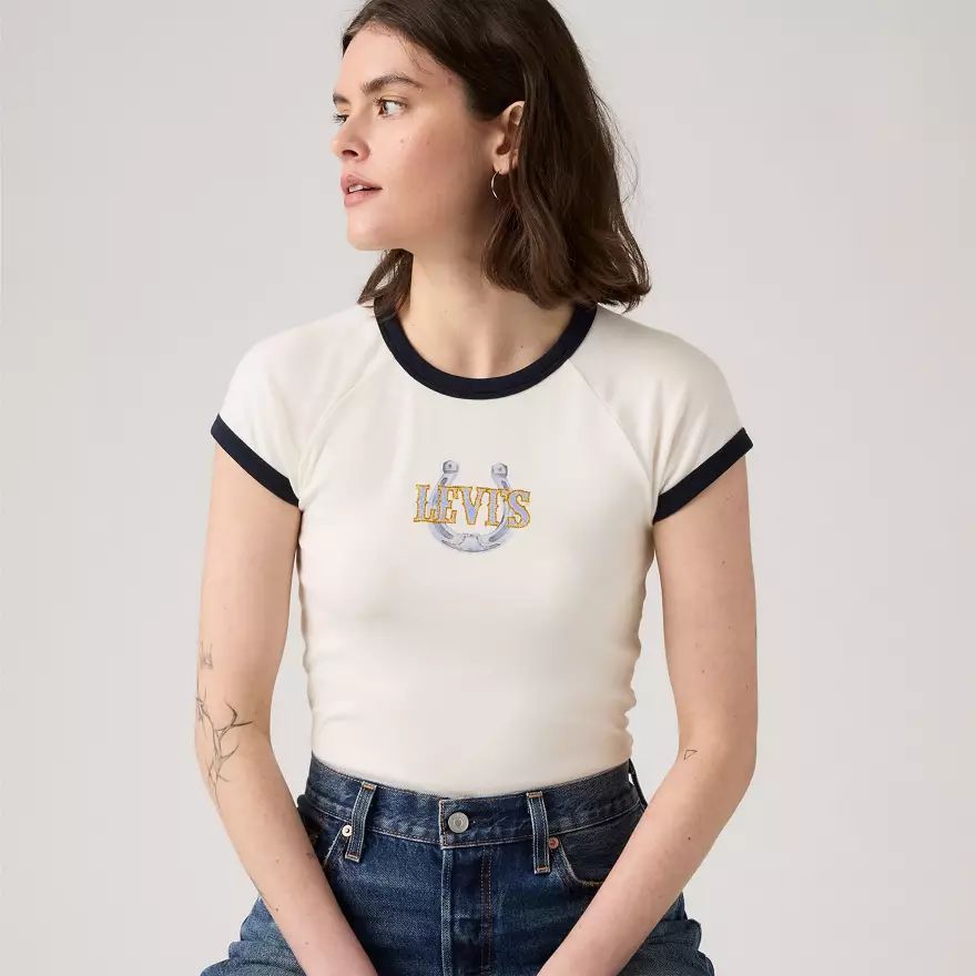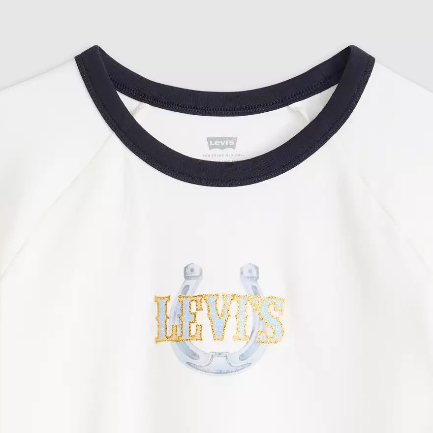 Notre t-shirt graphique Riley Raglan n’a rien de basique. Avec sa coupe ajustée, ses manches courtes décontractées, des bandes de col et manches contrastées et un graphique Levi's® scintillant unique en son genre.