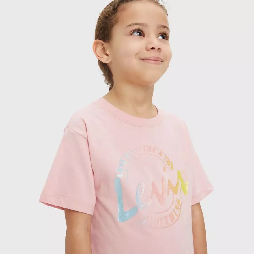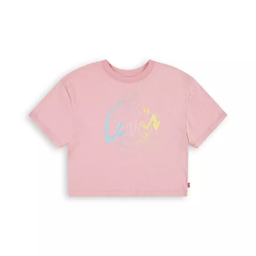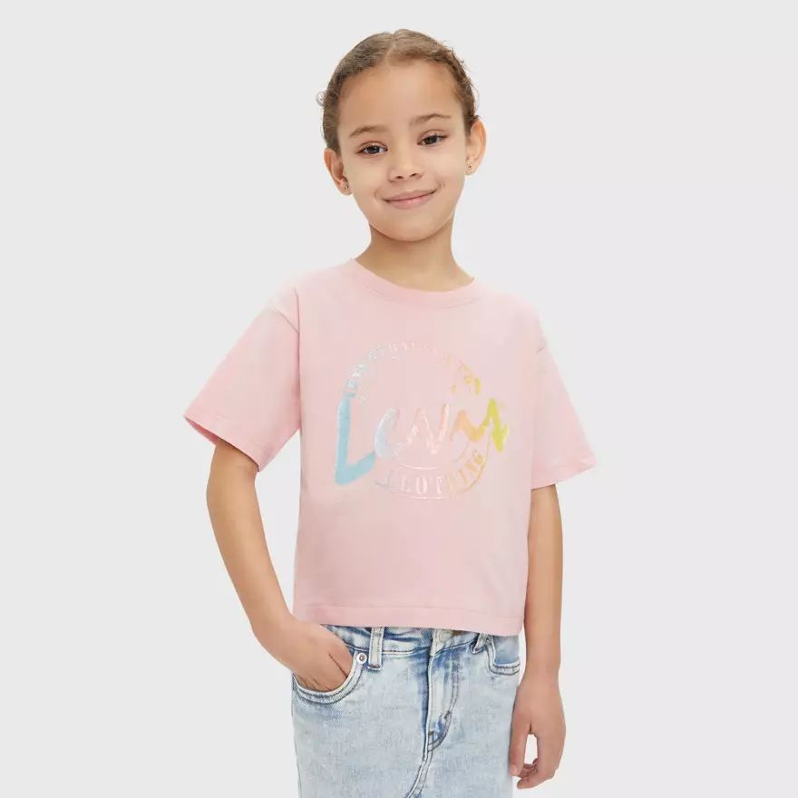 Ce t-shirt à manches courtes Levi's® est en coton bio et doux avec un imprimé graphique devant. La coupe crop est tout de même bien couvrante et ce look adorable pour enfant ne limite en rien le confort