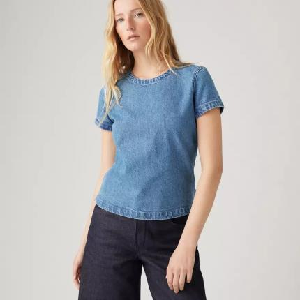 Pour les jours où vous ne savez pas quoi porter : Découvrez notre t-shirt manche courte Hayes. Il a une encolure ronde classique et une adorable coupe ajustée.