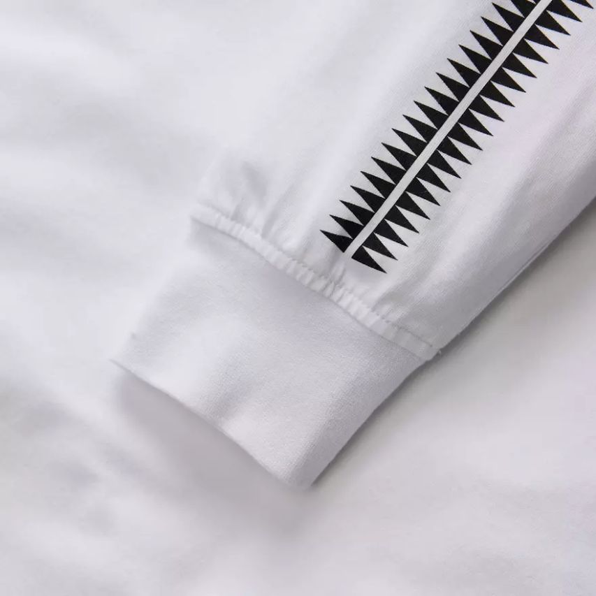 Ce t-shirt manche longue, en édition limitée et au fit relaxed, a un motif en zigzag imprimé sur le col et les manches.