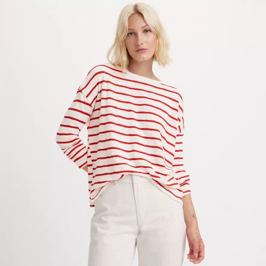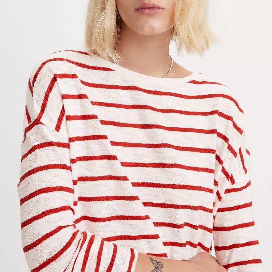 Décontracté et léger, le t-shirt Margot à manches longues est un bonheur à porter au quotidien. Nous le proposons avec une encolure ronde intemporelle, des manches longues et un fit ample.
