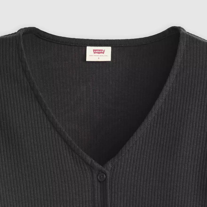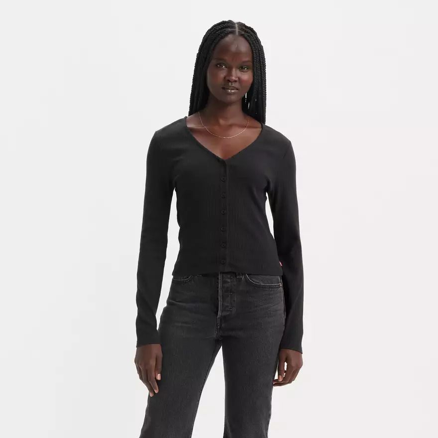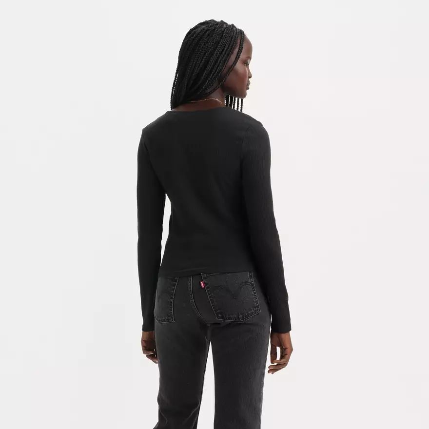 Nous aimons les hauts polyvalents. Mi-cardigan, mi-maille de tous les jours, notre t-shirt manche longue Muse a une encolure en V flatteuse, une patte de boutonnage devant et un fit slim qui met en valeur la silhouette.