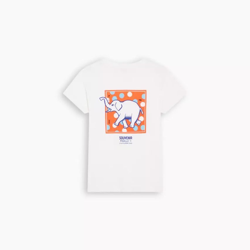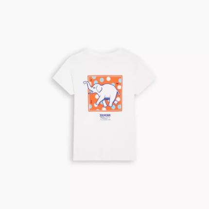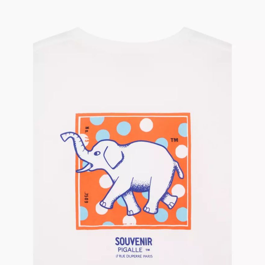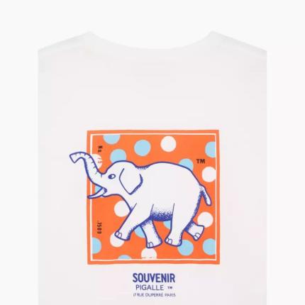 Le t-shirt sportswear des années 1950 reflète la transition vers un style de vie américain plus décontracté et orienté loisirs. Comme à l’époque, ce modèle casual a un fit légèrement boxy, avec des manches très courtes. Ce t-shirt est un véritable symbole grâce à sa sérigraphie d’éléphant dans le dos qui représente la profondeur et la durabilité des souvenirs que Souvenir Pigalle™ propose.