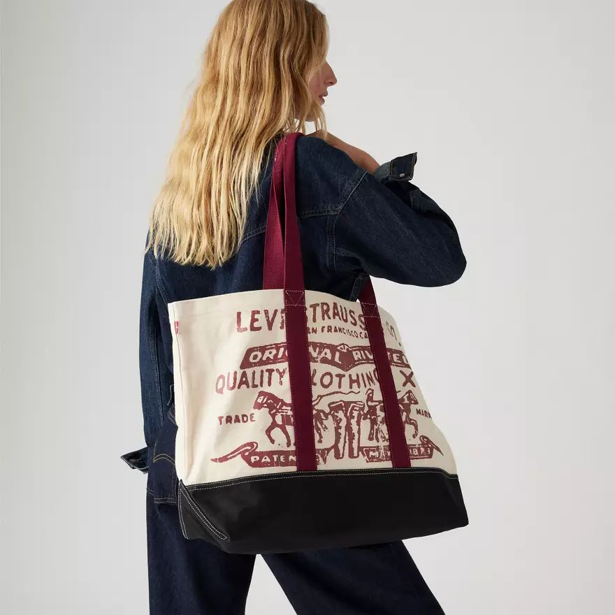 Suffisamment costaud pour l’utiliser tous les jours, notre sac cabas Two Horse a deux anses supérieures qui reposent confortablement sur vos épaules ou dans le creux de votre bras, ce qui en fait le sac idéal pour aller au marché le week-end et ranger vos courses du marché de producteurs. Nous lui avons aussi ajouté notre graphisme signature Two Horse.