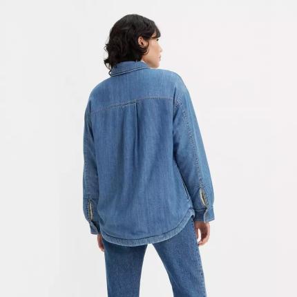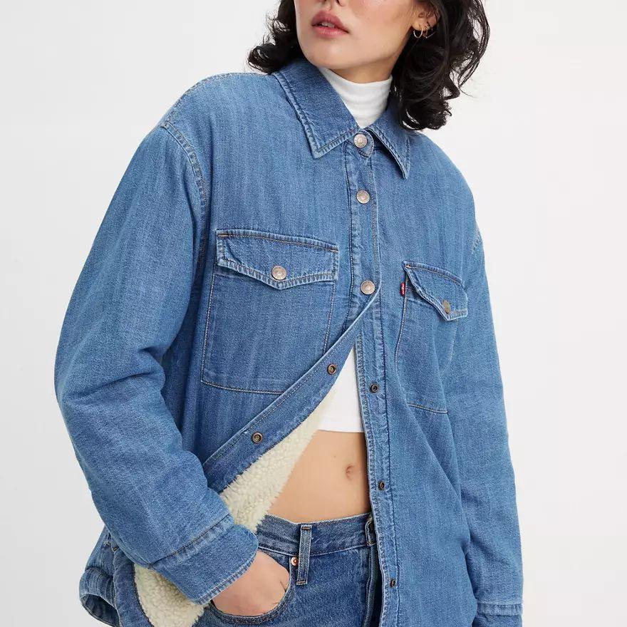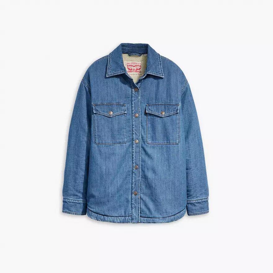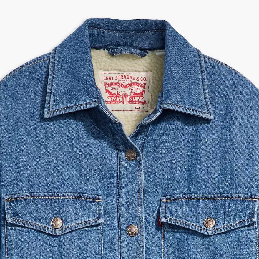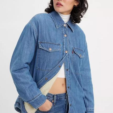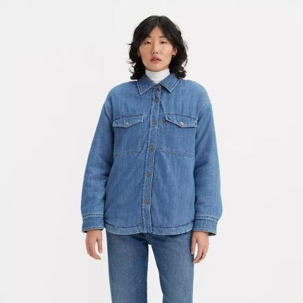 Mi-chemise. Mi-veste. C’est une nouvelle interprétation d’un classique de la mode masculine. Notre veste-chemise Lola revisite un style Levi's® par son fit relaxed, sa patte de boutonnage, sa Red Tab (repère visuel instinctif) et ses deux poches à rabat devant.