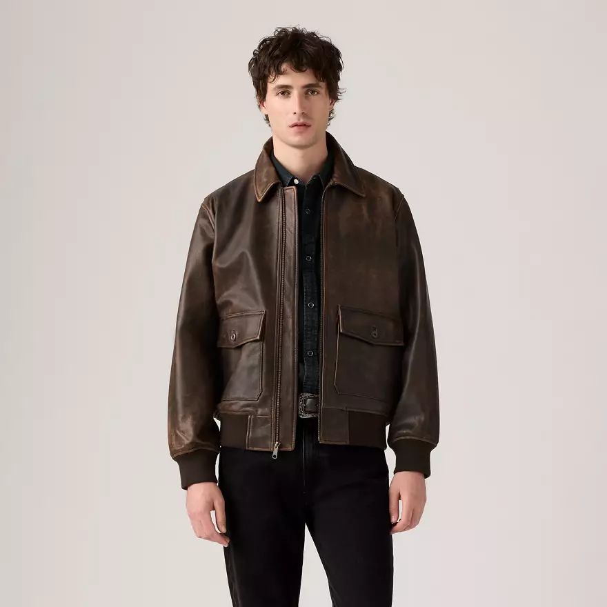 Inspirée des blousons d’aviateur classiques, cette veste blouson d’aviateur en cuir Clayton a une coupe standard intemporelle et un zip intégral.