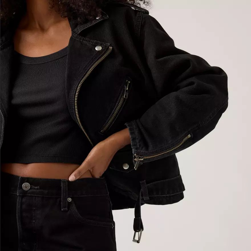 Notre veste de moto en denim reprend le look classique d’une veste de motard et les caractéristiques de notre denim emblématique. Pour ce modèle, nous avons opté pour une coupe classique, une patte de boutonnage devant et deux poches pratiques.