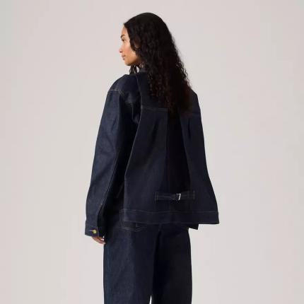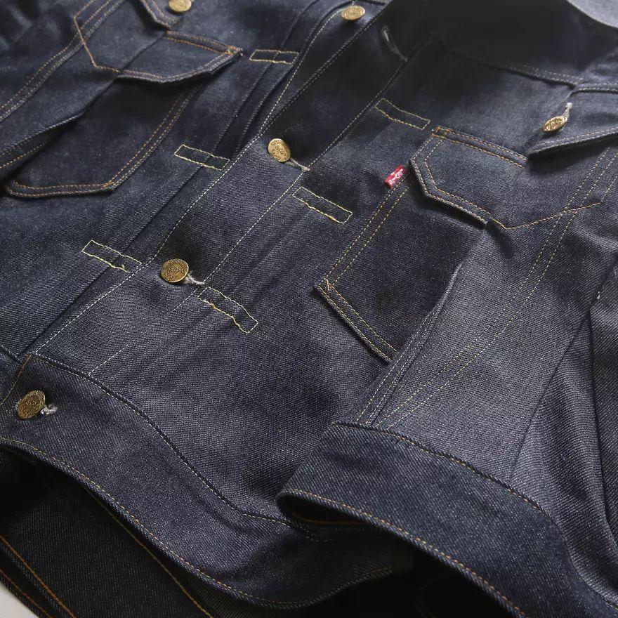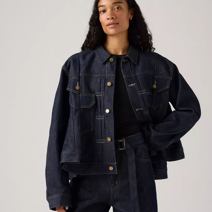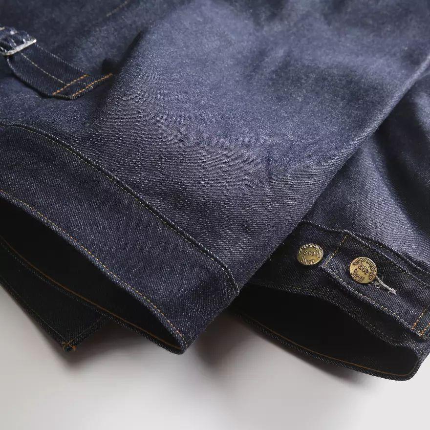Nous nous sommes inspirés de nos vestes Trucker Type I, Type Il et Type Ill pour créer cette veste en denim en édition limitée. Une coupe légèrement en A et boxy pour ce modèle hybride. Le dos est inspiré de la Trucker Type I, avec une martingale classique et devant, c’est un mélange de la Type II et de la Type III. Nous avons également ajouté quelques détails soignés à l’intérieur, comme des surpiqûres et des goussets qui apportent une certaine structure à la veste.