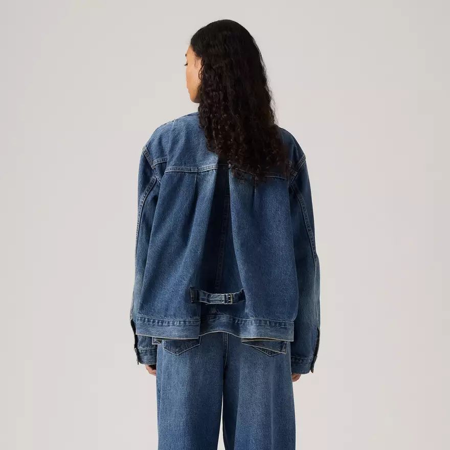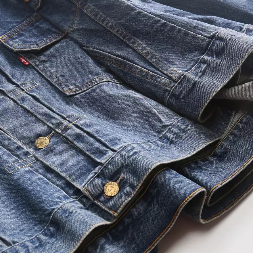 Nous nous sommes inspirés de nos vestes Trucker Type I, Type Il et Type Ill pour créer cette veste en denim en édition limitée. Une coupe légèrement en A et boxy pour ce modèle hybride. Le dos est inspiré de la Trucker Type I, avec une martingale classique et devant, c’est un mélange de la Type II et de la Type III. Nous avons également ajouté quelques détails soignés à l’intérieur, comme des surpiqûres et des goussets qui apportent une certaine structure à la veste.