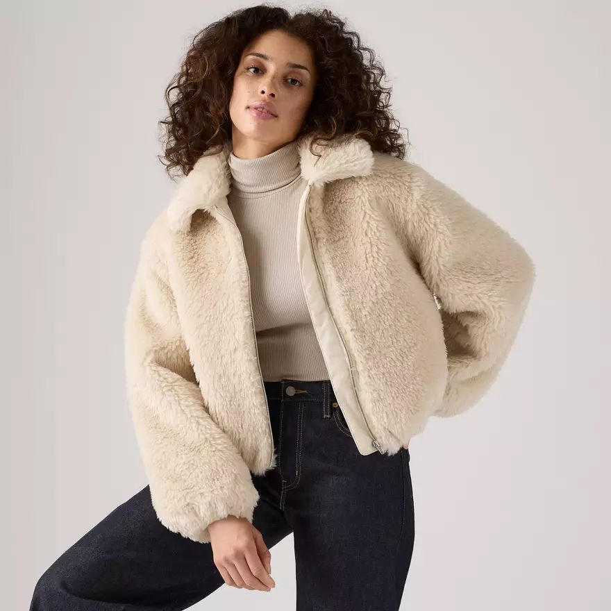 Restez bien au chaud avec notre veste Sherpa Elle. Nous avons opté pour une fermeture zippée, une coupe classique et un tissu tout doux.
