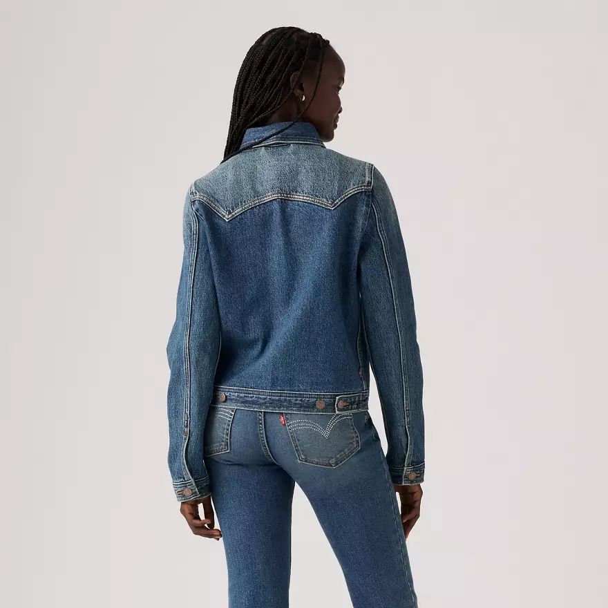 Notre veste Trucker Embellished Original vous habille à elle seule. Il vous sera difficile de trouver une veste avec une forme aussi pratique et aussi plaisante ou une sensation naturelle de décontraction et de bien-être. Nous avons ajouté des ornements devant et dans le dos. Bonus : Les poches intérieures profondes permettent d’y glisser quelques bricoles.