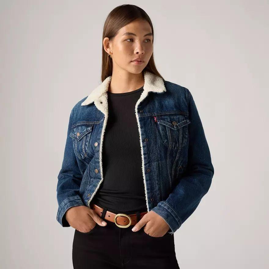 Notre veste en denim intemporelle se pare d’une doublure chaude en sherpa