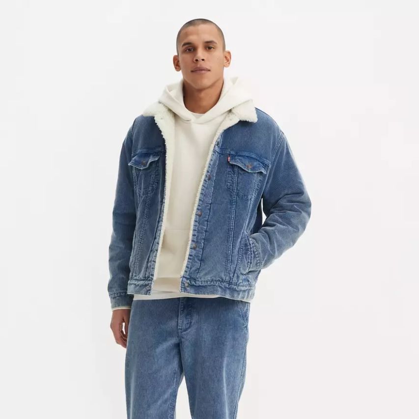 La contrepartie la plus cosy de notre veste Trucker Original, notre veste Trucker Relaxed Fit Trucker est en velours durable et doublée dans un molleton sherpa bouclé bien chaud. Notre veste Trucker iconique et immédiatement reconnaissable est un symbole de l’expression de soi depuis des dizaines d’années.