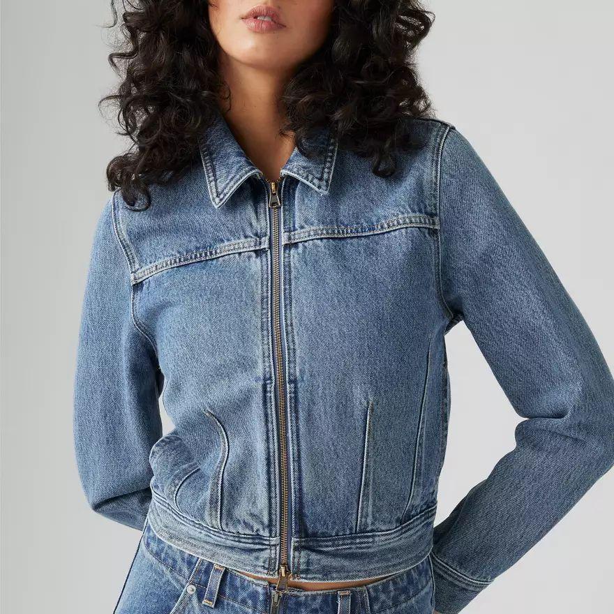 Nous avons repris notre veste Trucker classique et l’avons raccourcie pour créer notre veste Trucker XS Dart. Une coupe crop flatteuse, un fit slim, une fermeture zippée et des pinces pour un look vintage.